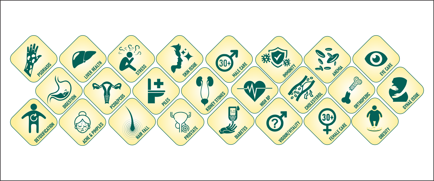 Comprehensive care for 20+ lifestyle disorders, available at Deltas Pharma wellness centers nationwide